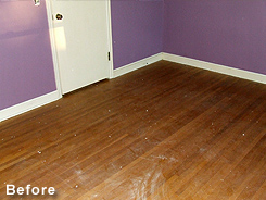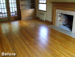 Refinishing - Wood floors that have become unsightly from years of wear or neglect can be restored to their original beauty. Machine sanding removes the old finish and exposes new wood. With the application of a finishing material, floors are like new again. We highly recommend you call us to have your wood floors professionally refinished. IMPORTANT!